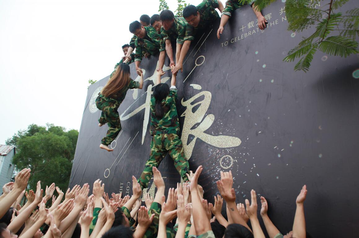 最后的畢業(yè)墻環(huán)節(jié)是最感動我的,我內(nèi)心滿滿的都是感動,大家團(tuán)結(jié)一致在19分鐘的時間完成挑戰(zhàn),我們都相互驚呆了。是的,沒有克服不了的困難,辦法永遠(yuǎn)比困難多。只要大家都在一個頻道上,為一份事業(yè)共同付出努力,總會成功,心在一起才是團(tuán)隊。最后,感謝我們的老板,感謝公司給了我一個這么難忘深刻的回憶。