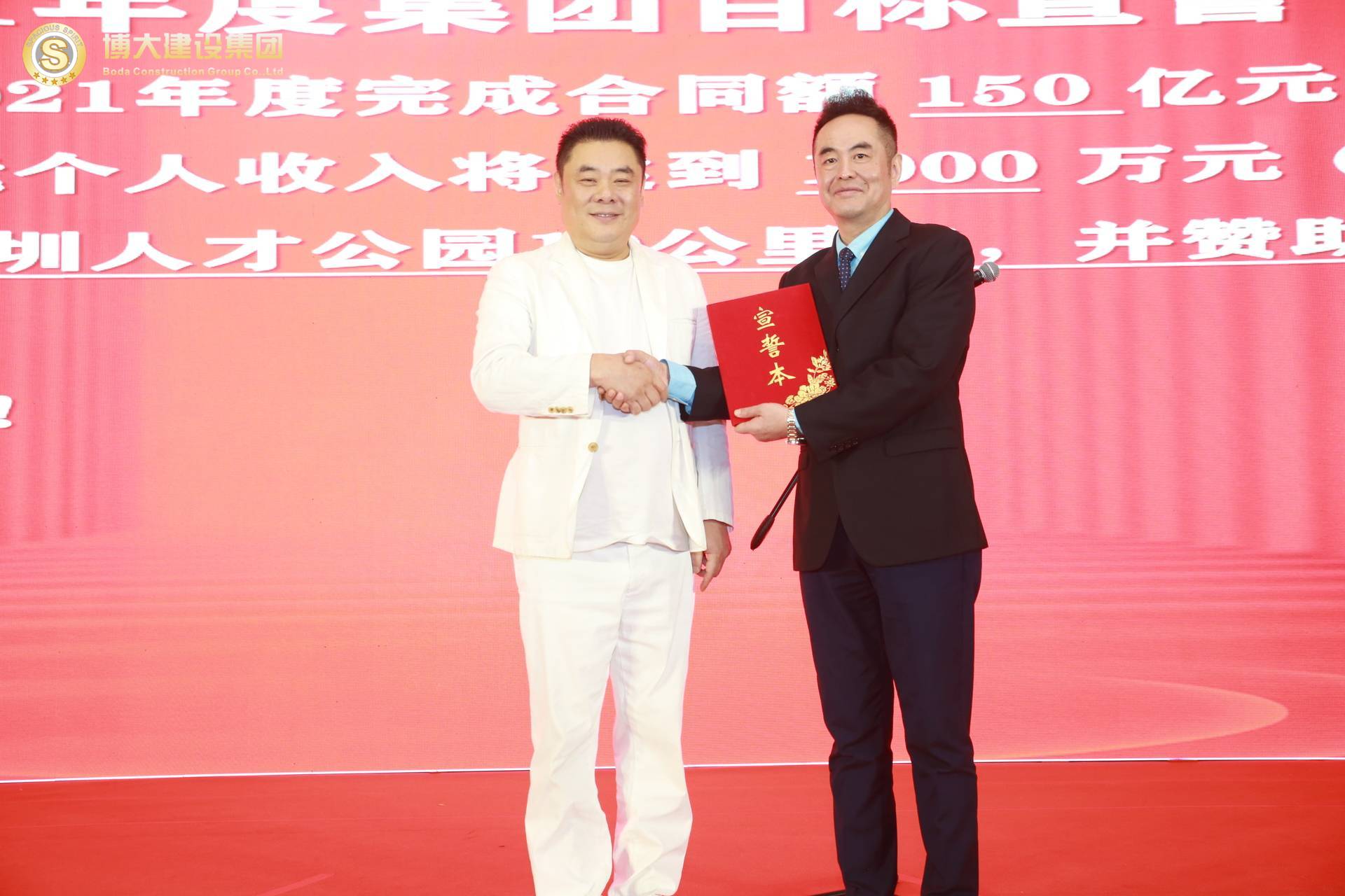 各戰(zhàn)區(qū)、中心、工廠負責人逐一上臺,在全體合伙人的見證下對2021年的部門目標和個人收入目標莊嚴宣誓,洪董代表集團對股東宣誓!